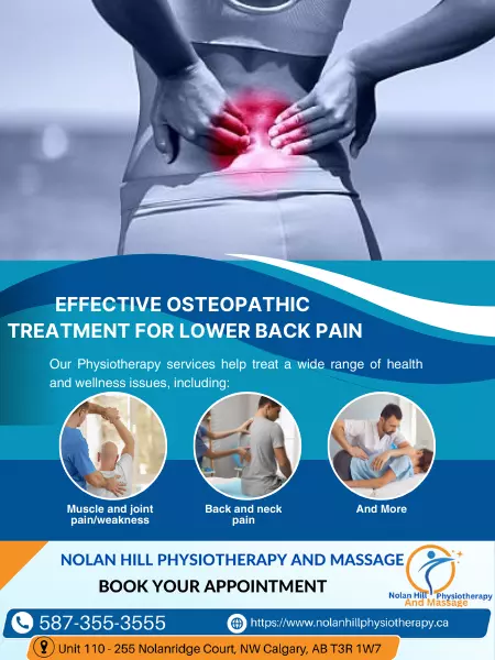 Patients seeking osteopathic treatment for back pain can book a free 15-minute consultation with a qualified and registered therapist at Nolan Hill Physiotherapy & Massage NW Calgary, where treatment options are discussed in detail with the patient.